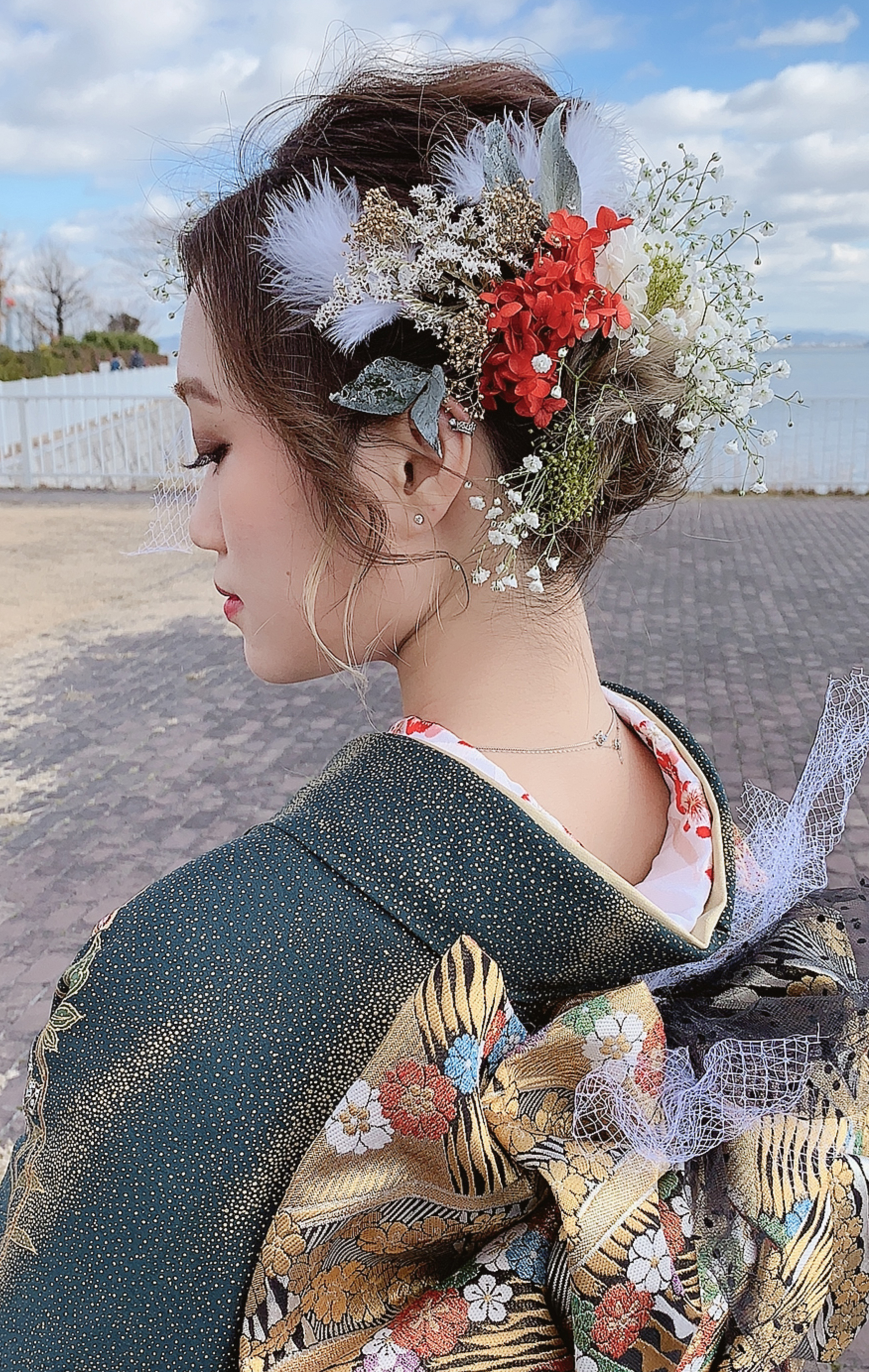 「花十色」(呉服&着付教室)様との提携により、お客様に着付をご提供いたします。 メイクはIBF国際認定資格を持った辻元が担当させて頂きます。