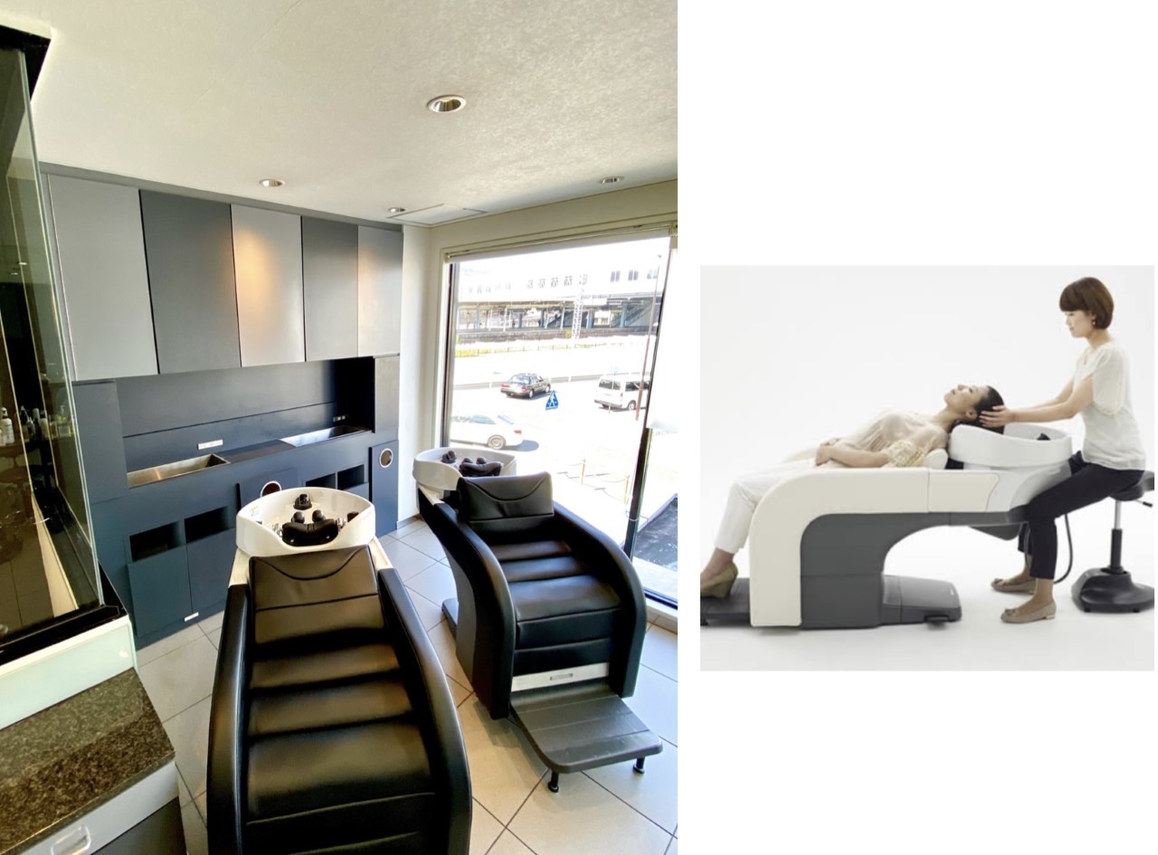 「夢(YUME)シャンプー」とは、うたた寝スタイルのシャンプー椅子に、頸部への負担を大幅に軽減する特殊なネックサポーターを搭載した、長時間でも快適に寝ていただけるシャンプー機器です。